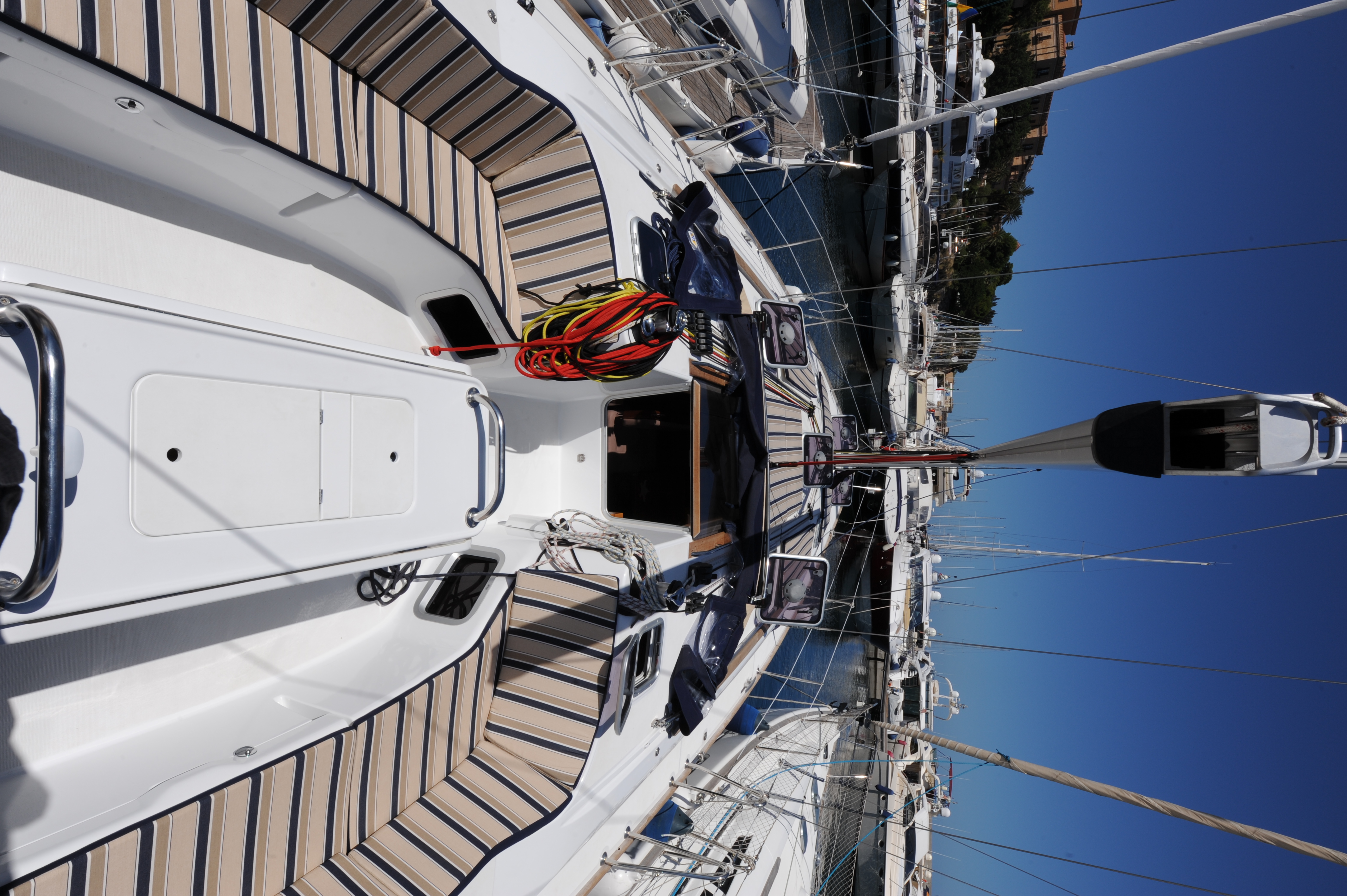 12 Volt Sockets, 220 Volt Sockets, Battery charger, Bimini top, Binoculars, Blankets, Boat hook, Bosuns chair, Cockpit light, Cockpit table, Compass, Cushions in cockpit, Deck brush, Deck shower, Air conditioning, Roll main sail, Depth gauge, Dinghy, Electric an manual bilge pump, Electric bilge pumps, Electric Refrigerator, Electric winches, Electric Windlass, Emergency tiller, Engine oil, External cushions, External speakers, Fenders, Fire Extinguishers, First aid kit, Flashlight, Furling Genoa , GPS Plotter, Inflatable life raft, Inverter, Jerrycans for diesel, Jerrycans for gasoline, Kitchen equipment, Ladder, Life bouy + flahing light, Life jackets, List of Lights, Lubricant, Main anchor, Manual bilge pumps, Manual winches, Moka, Mooring lines, Nautical charts, Nautical guide, Oars, Outside speakers, Oven, Pillows, Plastic bucket, Plastic bucket, Radar reflector, Radio/CD MP3 + aux input, Radiotelephone VHF, Safety Belts, Sail Repair Kit, Signal rockets, Spare anchor + chain, Speedometer, Spreyhood, Teak deck, Tool box, TV, Wardrobe, Water hose, Winch handles, Wind instrument/Anemometer, Autopilot, Lazy Bags, Safety net, Fans in the cabin, Electric toilets, Kitchen equipments, Lazy Jack, Outboard, Snorkeling Gear, Fuel funnel, Gas cylinders, Pump, Broom, Small shovel, Log, Anemometer, Hand compass, Navigation ruler, Watch, Insurances, Water pilot, Rockets parachute, Hand flares, Fog horn, Aux input, Ice box