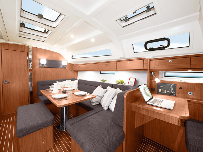 Autopilot, Compass, Depth indicator, GPS plotter outside, VHF, Wind station, Bimini, Cockpit and deck in teak, Double steering wheel, Electric windlass with meter indicator, Furling main sail, Sprayhood, Teak table in cockpit, Winches (genoa), Winches for main, Boiler, Bow thruster, Fridge, Holding tank, Inside led lights, Oven, Radio, Fire extinguisher system, Safety equipment, Automatic bilge pump, Cold/hot water outside shower , Pressurized water pump with filter