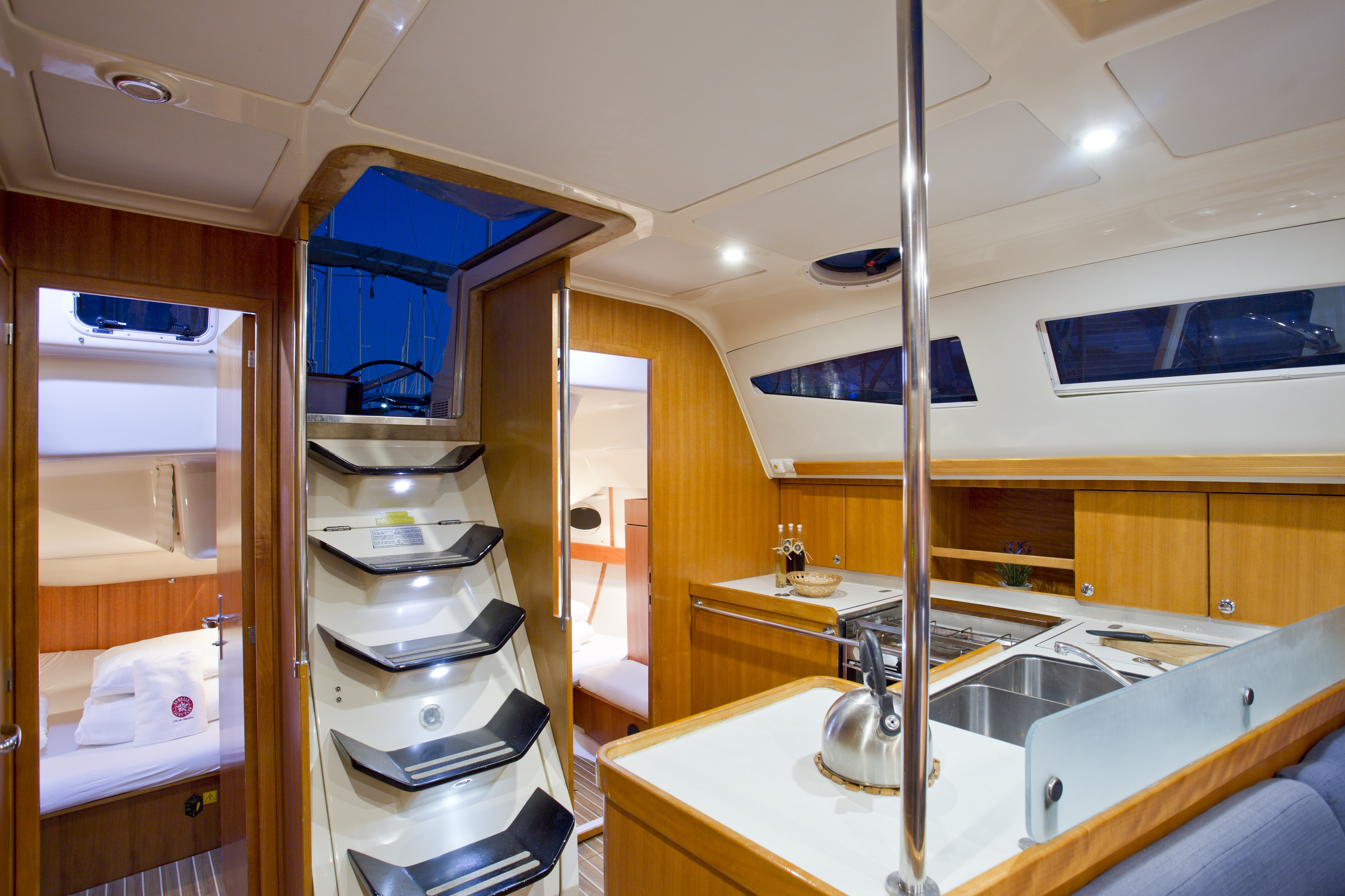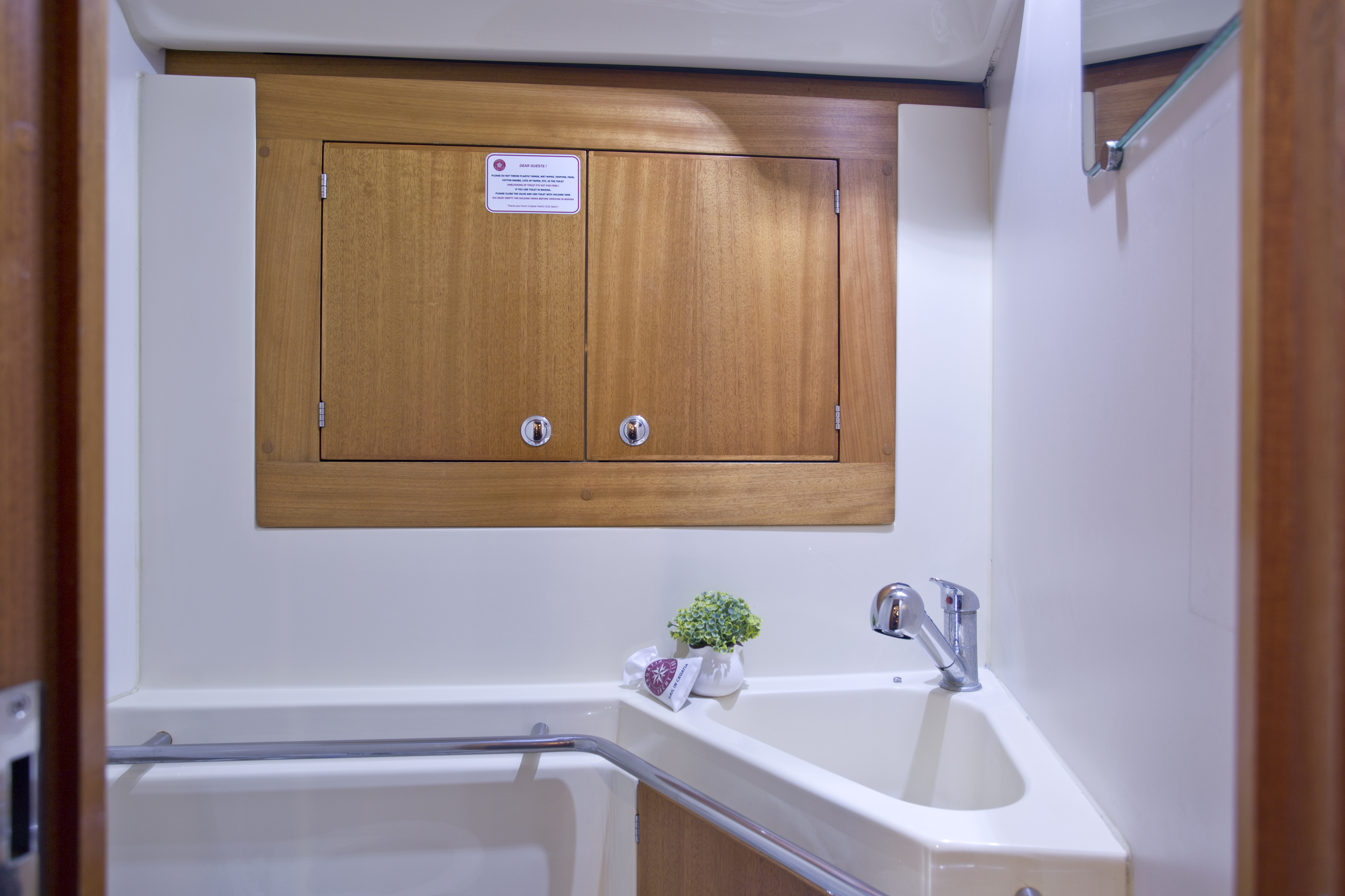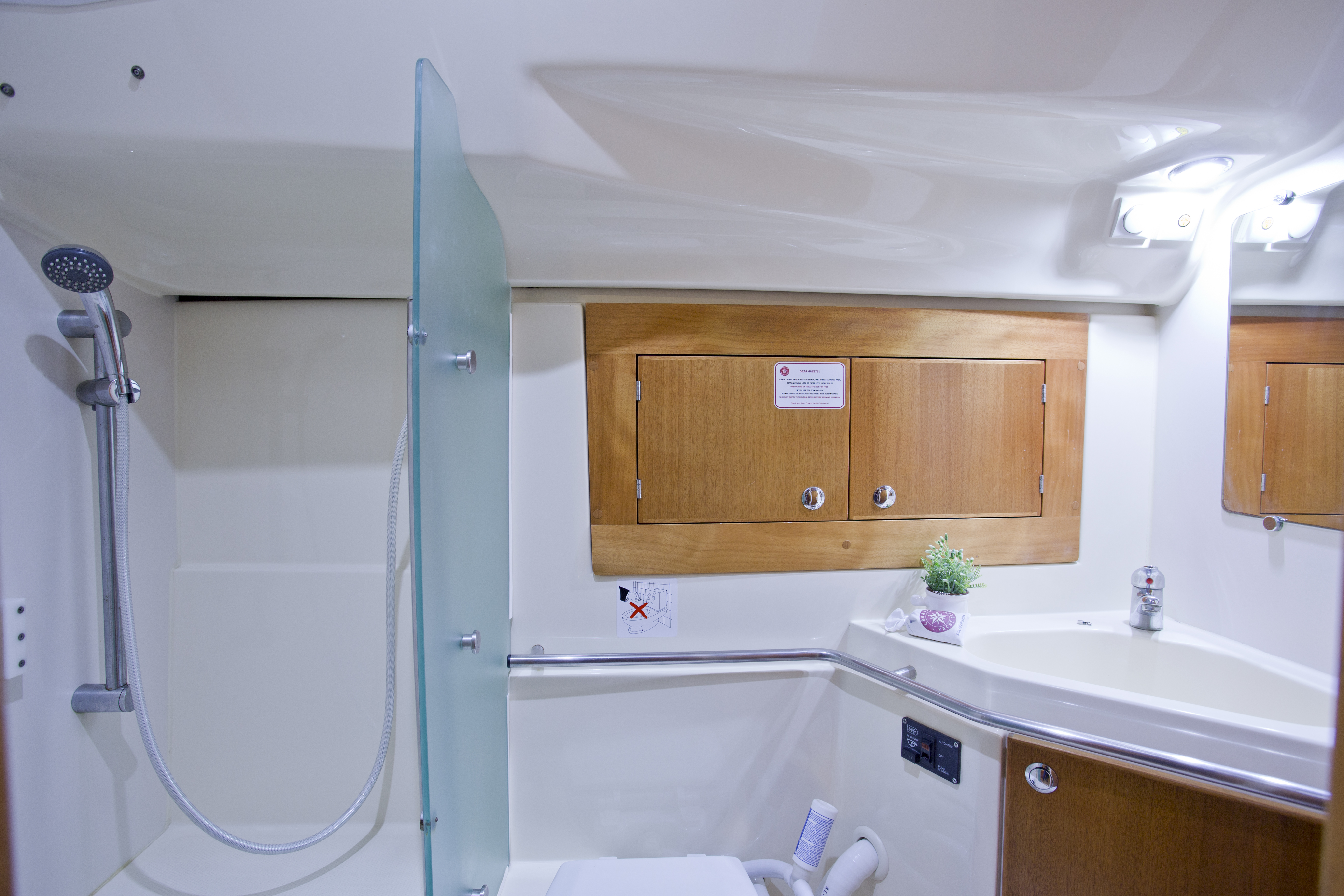 GPS plotter in cockpit, Autopilot, Bimini, Bowthruster, Cockpit table, Deck shower, Depth sounder, Dinghy, El. charger, Electric anchor winch, Electric bilge pump, Electric fridge, Furling Genoa, Hot water, Manual bilge pump, Nautical charts, Nautical guide, Self tackling winch, Stereo/CD, VHF, Bed sheets and towles, Kitchen equipment, Life jackets, Navigation equipment, Safety harnesses, Shore power, Heating, Sprayhood, Standard mainsail, 2 steering wheels, Folding propeler, Freezer , Holding tanks, New sails 2017, Pets are not allowed onboard