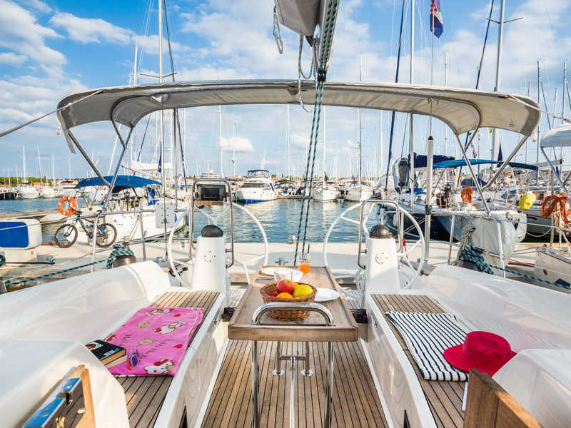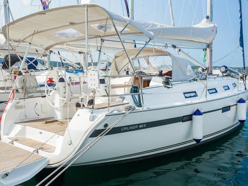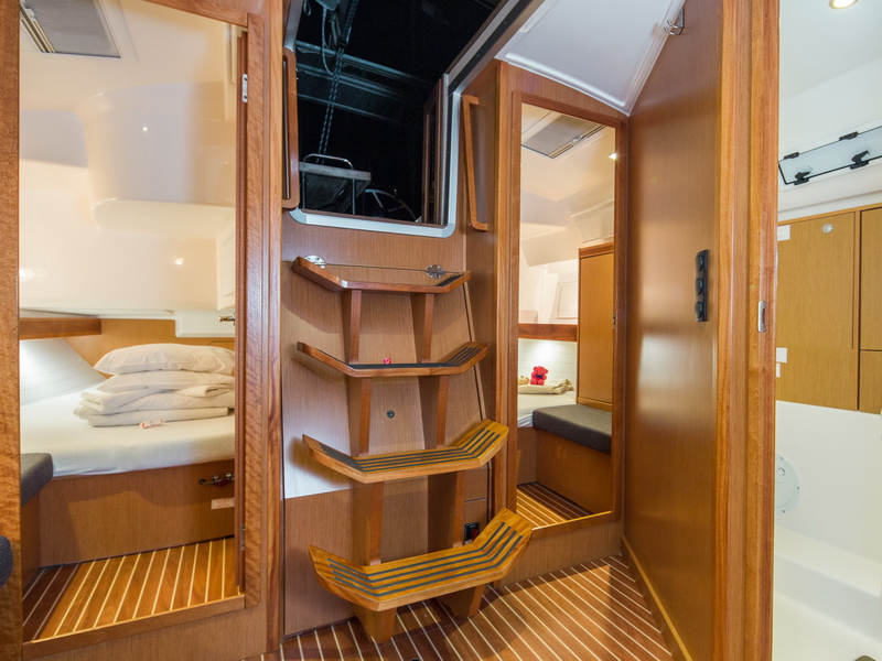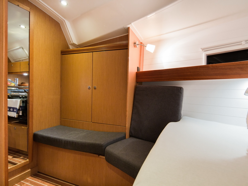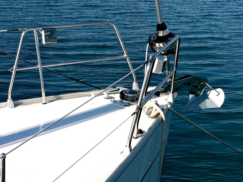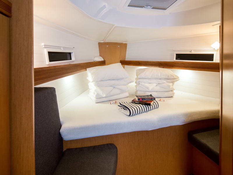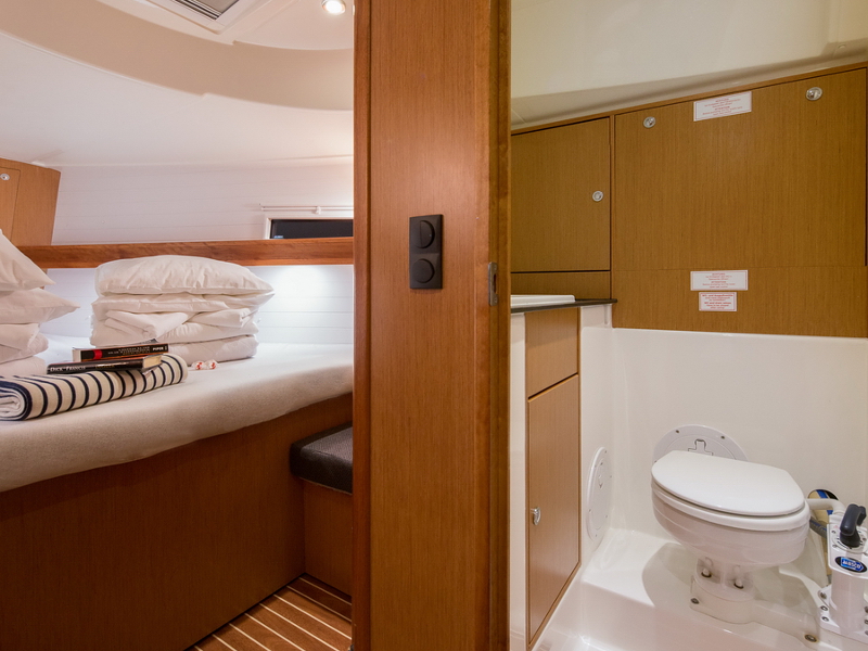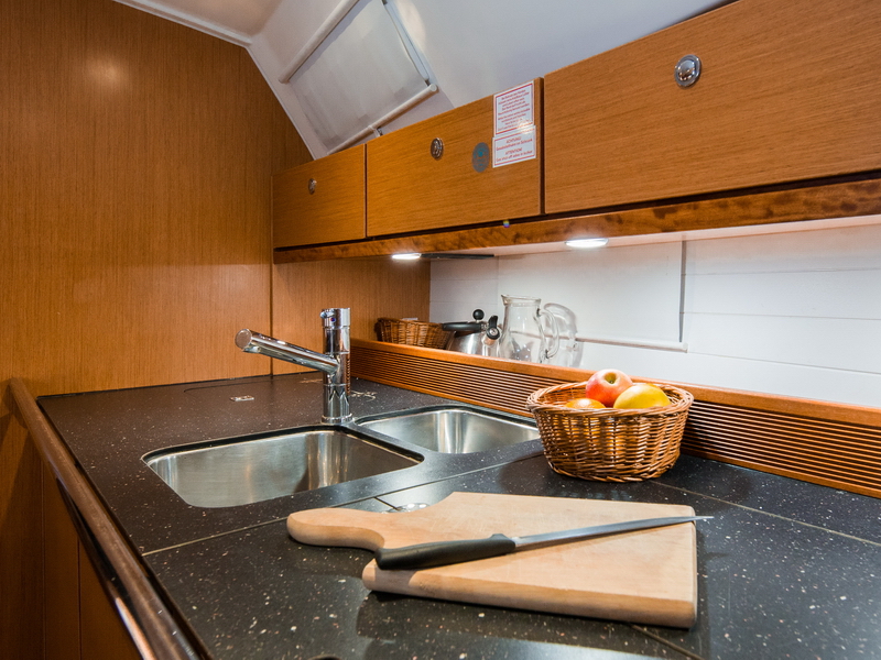 Box of flares, Emergency tiller, First aid kit, Floating light, GMDSS, Horse shoe buoy, Life jackets, Safety harnesses, Smoke box, Torch, Autopilot, Chart plotter in cockpit, Compass, Eletronic sea charts, GPS, VHF radio, Wind speed meter, Furling genoa, Lazy jack, Mail sail full batten, Spinnaker pole, Winches GENOA SHEET X2, Winches HALYARDS X2, Winches MAIN SHEET X2, Anchor electric windlass, Battery charger + shore cable, Bed linen, Bimini top, Cockpit speakers, Cockpit table, Deck shower (hot water), Dinghy, Electric bilge pump, Electric fridge, Free unlimited internet, Gangway, Gas bottle, Gas stove with oven, Heating, Hot water, Radio / CD player / MP3 /USB, Sprayhood, Steering wheel, TV / DVD