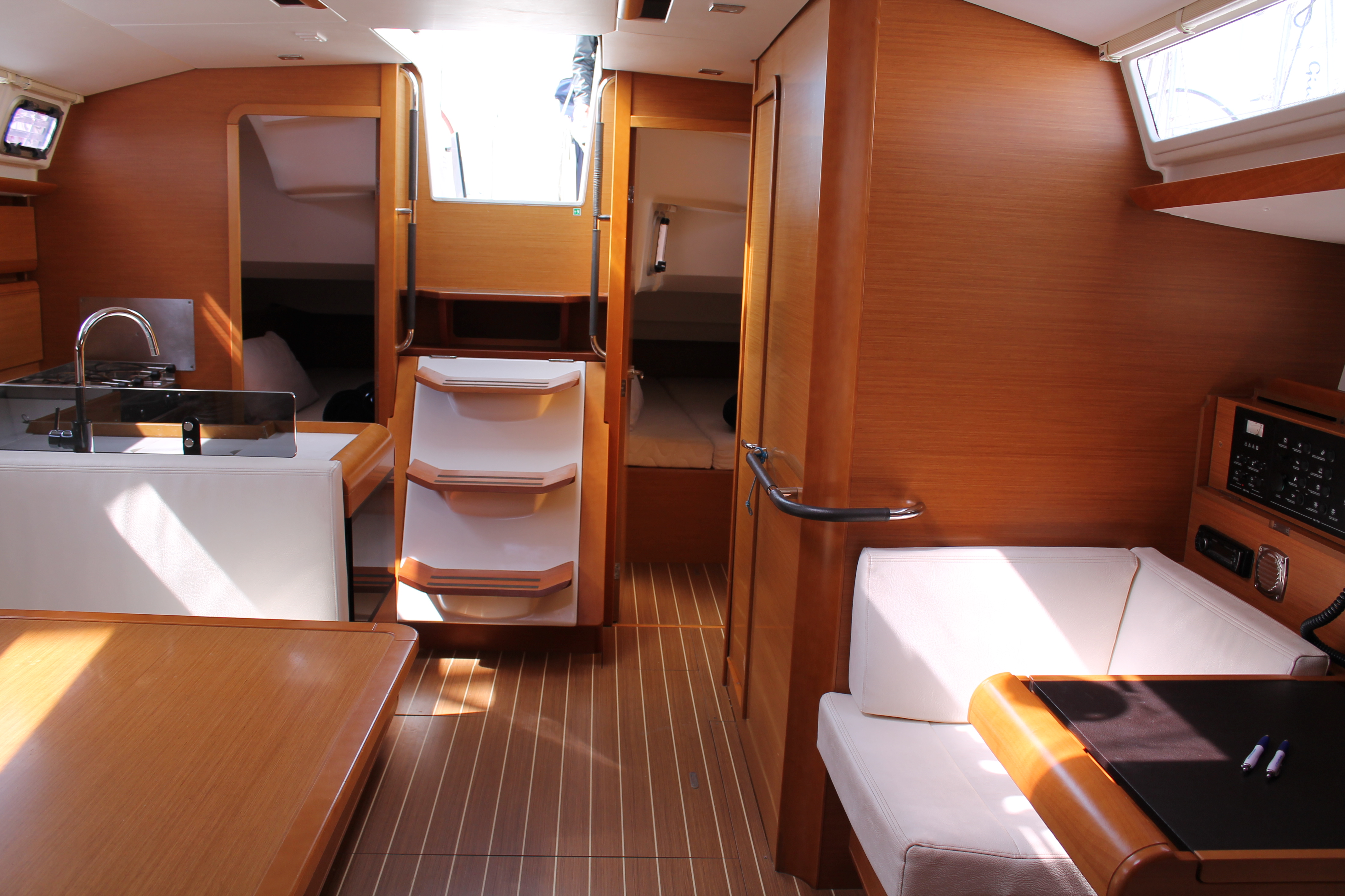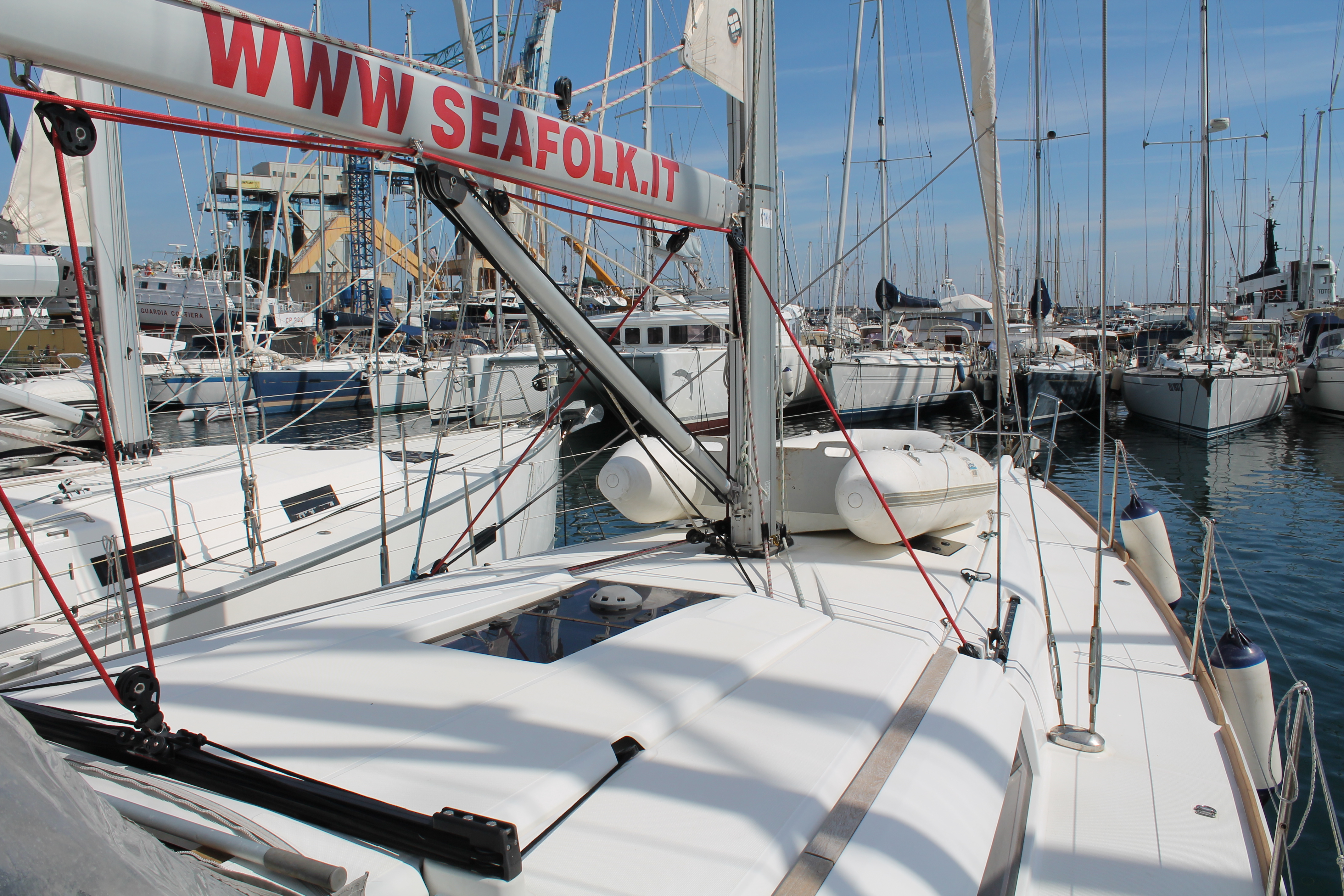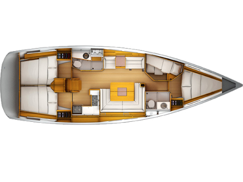 Anemometer, Autopilot, Battery charger, Bimini Top, Bow Thruster, Cartographic GPS, Cockpit cushions, Cockpit speakers, Cockpit table, Deck light, Deck shower, Dinghy, Electricity on board 12V and 220V, Electric wc, Electric windlass, Furling Genoa, Furling main sail, GPS + plotter, Inverter, Log/Speedo, Radio CD Player, Shore power cable 220V, Sprayhood