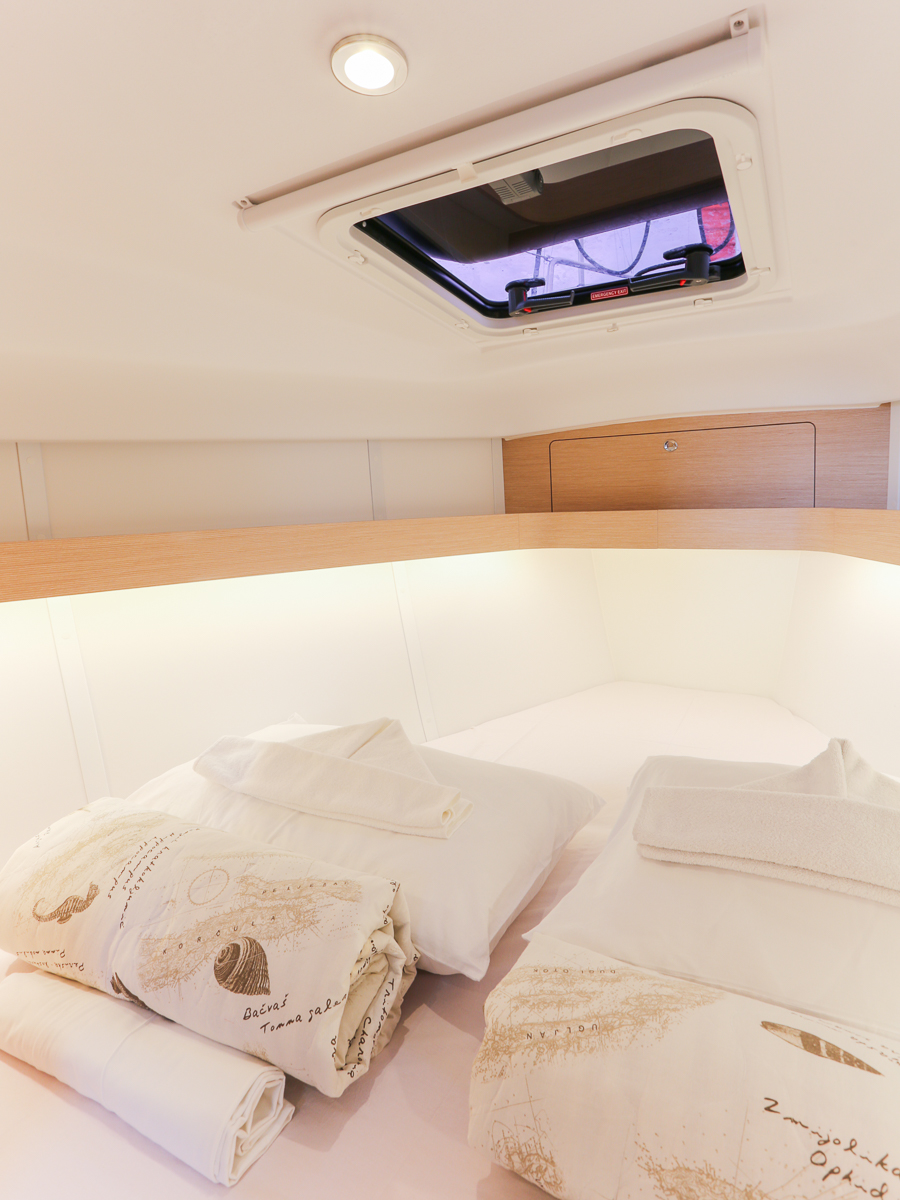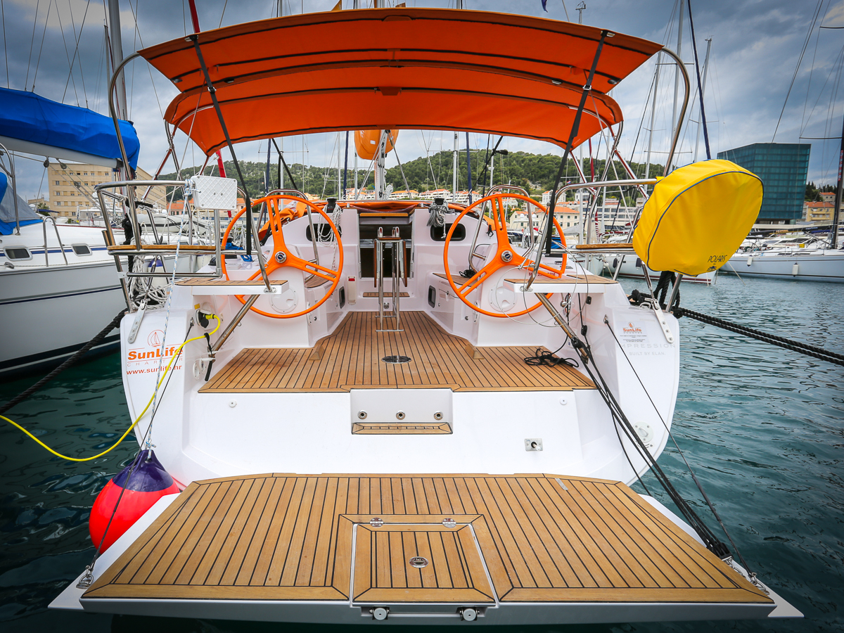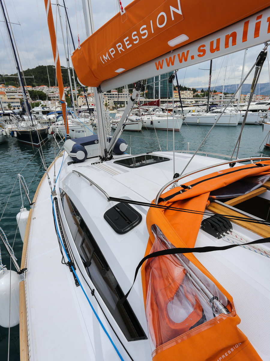 Lazy bag / semi-battened , Holding tank, YEARLY BERTH IN ACI MARINA SPLIT, CD player, Hot water, Refridgerator, Stove, Safety net, Autopilot, Binocluar, Bow thruster, Daily marks, Divider, Echo sounder, Flag, GPS chart plotter, Info map, Log speedometer, Navigation ruler, Pilot book, Sea charts, Torch, VHF radio telephone, Wind indicator, Distress signal kit, Electric bildge pump, Fire extinguisher, Fire hatchet, First aid kit, Foghorn, Life jacket junior, Life jackets, Radar reflector, Repair kit with impeller, engine belt, fuel filters, oil, etc., Safety belt, Safety harnesses, Stormy anchor, Tool box, Anchor with chain 50 m, Automatic light, Bimini top, Boat hook, Central compass, Cockpit table, Deck brush, Deck shower, Door panels&keys, El. cable 220 V, Emergency tiller, Fenders, Gangway, Gas bottles, Hand pump handler, Horseshoe life bouy, Jerrycan of petrol, Mooring ropes, Oars, Padlock, Plastic bucket, Pump, Sprayhood, Steering wheel, Swimming ladder, Tank oppener keys, Water hose, Winch handles, Windlass el., 220 V INVERTER, Cockpit speakers, Bathing platform, Outboard engine - extras, Furling genoa