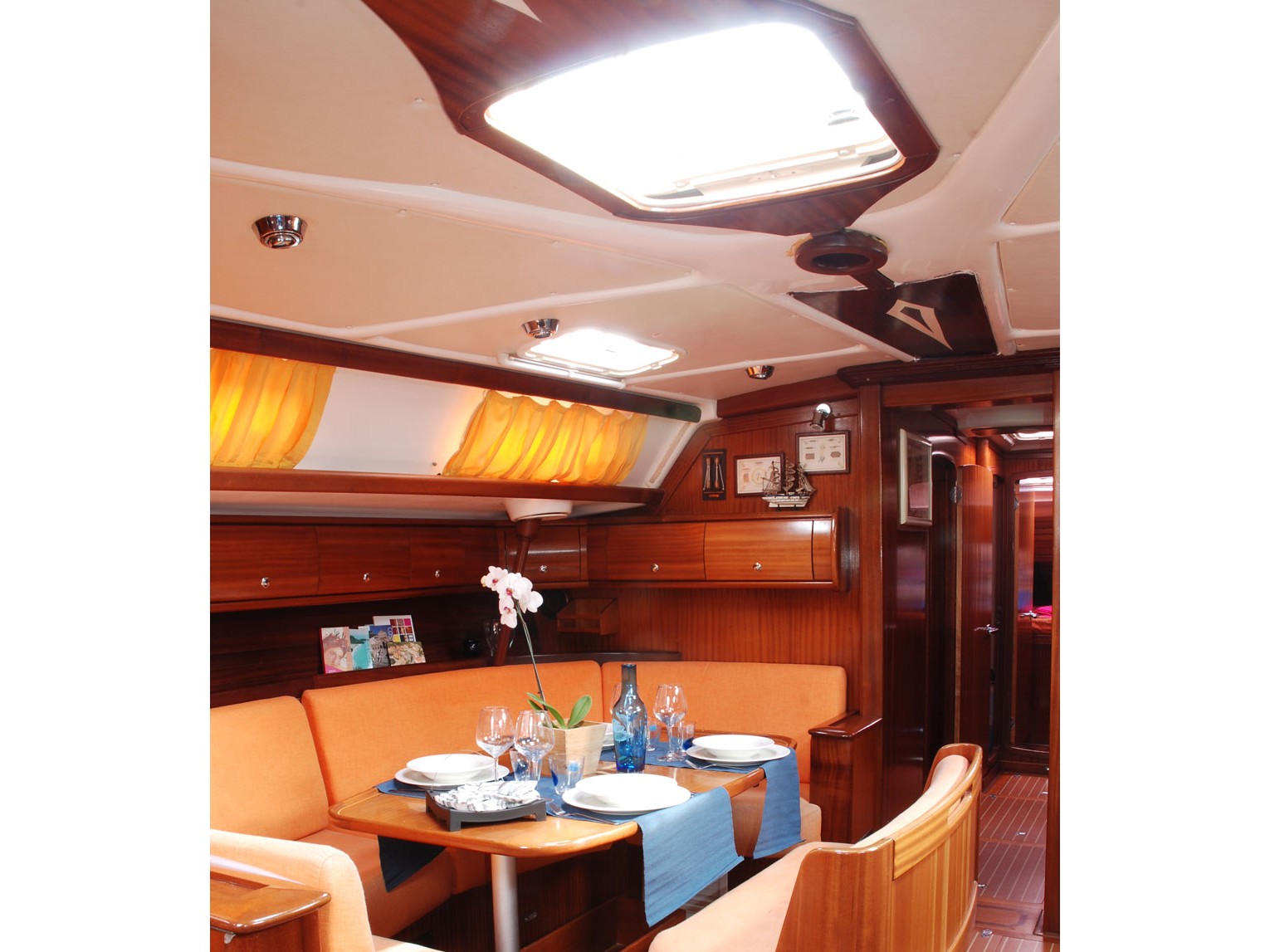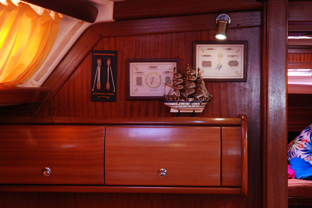 Bow thruster, Full Batten Mail Sail, Idraulic Gangway, Loudspeaker in cockpit, Inverter, Autopilot, Bimini, Cockpit cushions, Electric fridge, Electric Winch, Electric windlass, Furling genoa, GPS Chart plotter, Hi-Fi, Hot water, Lazy bag, Sprayhood, Teak deck, Tender, Tridata, Wind instruments, Lazy Jack