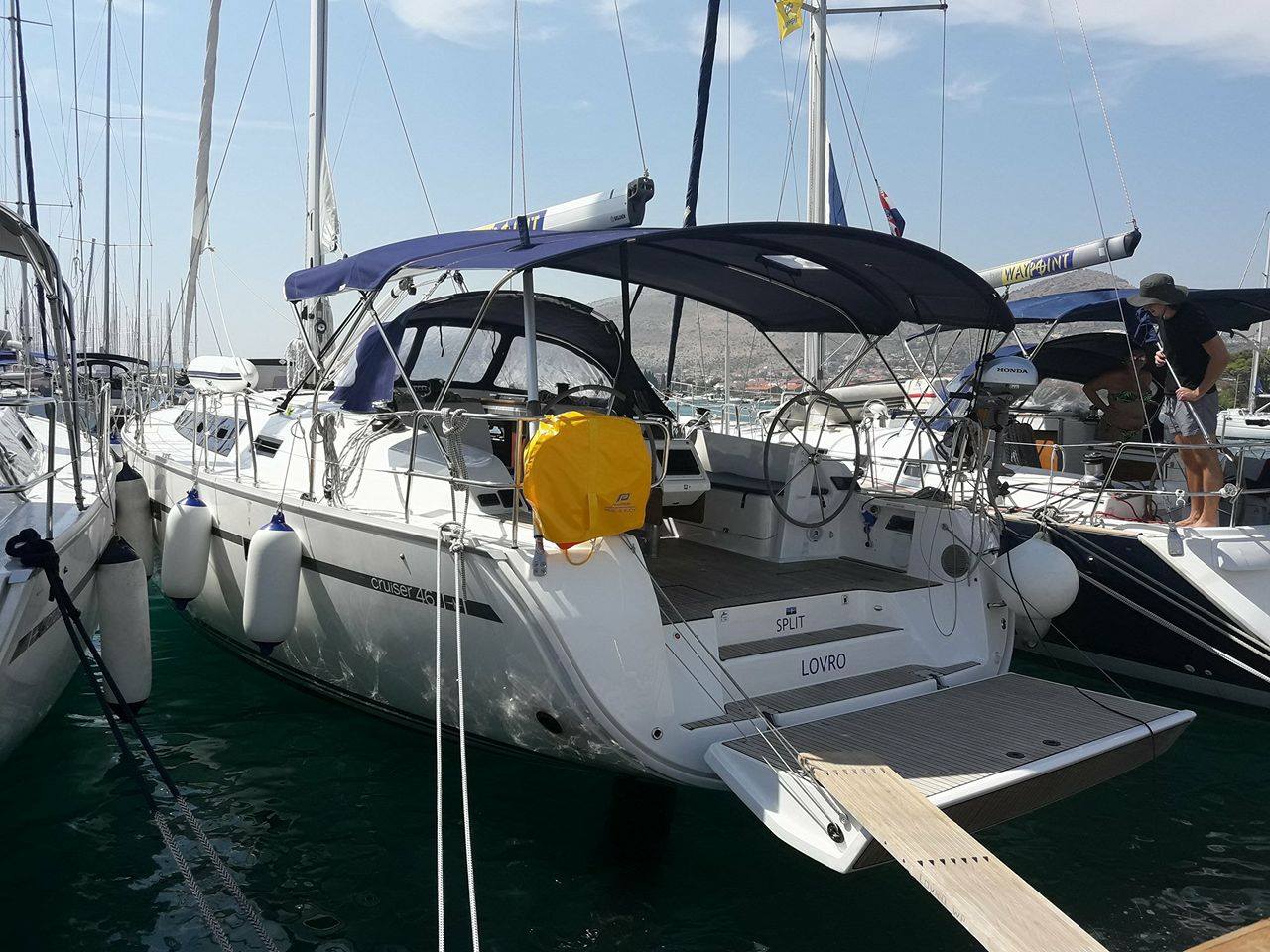 Autopilot, Outboarder, Bimini Top, Bowthruster, CD Player, Cockpit Table, Deck Shower, Depth Sounder, Furling/Roll Genoa, GPS, Log Speed, Sprayhood, VHF, Inverter, Webasto, Bathing platform, USB & Bluetooth, Electric toilette 3x, Automatic life jackets, Furling/Roll main, GPS plotter in cockpit