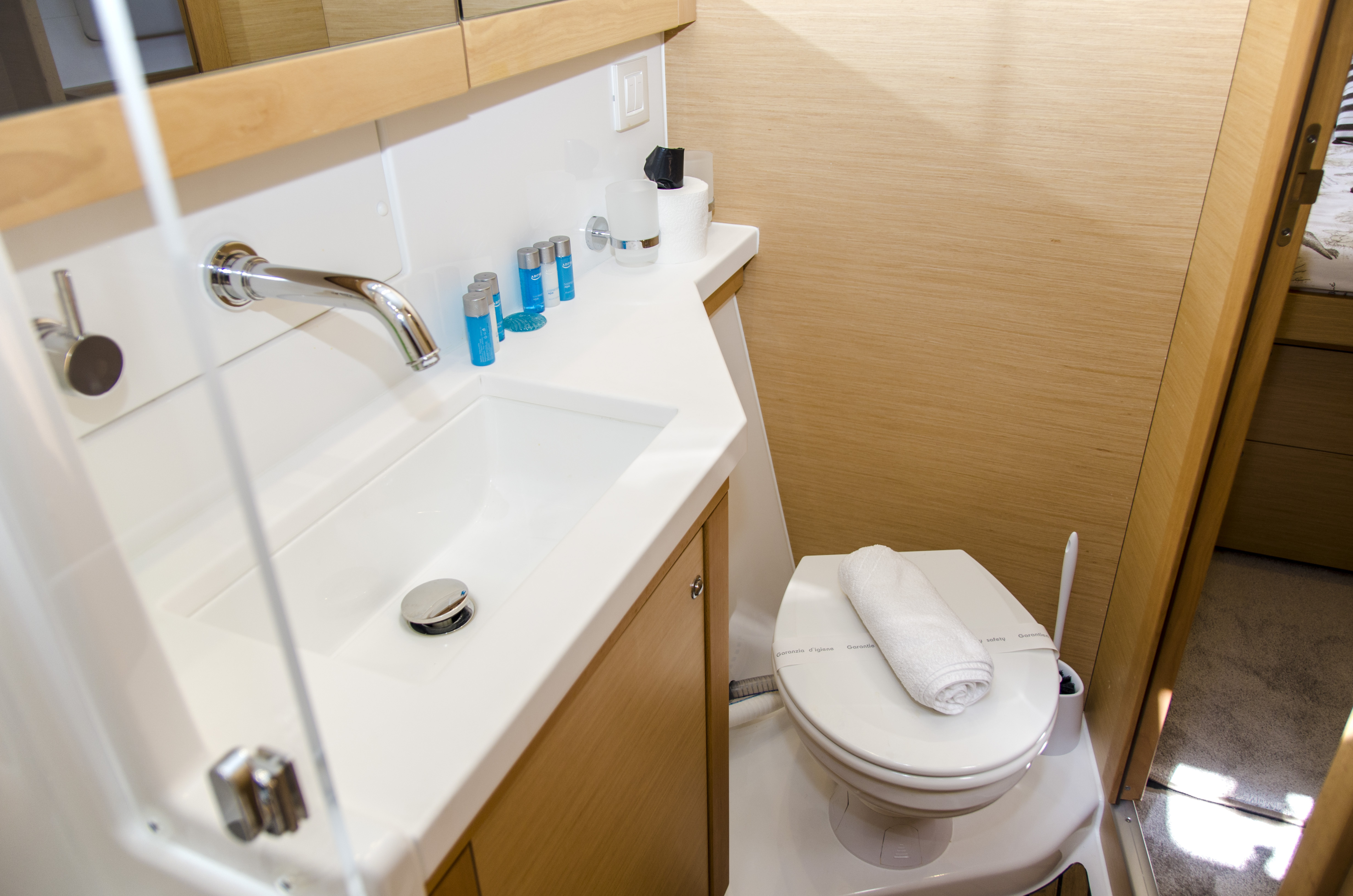 Dinghy Rigid, 220 V shore connection, battery charger, electrical toilet, Engine Battery (in Ah.), Generator, Service Battery (in Ah.), Cockpit Speakers, Radio/CD, TV + DVD, additional refrigerator in saloon, Cooker with oven, Cutlery, dishes, dishwashing machine, gas stove, icemaker, Microwave, refrigerator 130L, water heater, Autopilot, Chartplotter, Depth Gauge, depth sounder, GPS Chartplotter, Main Deck Compass, Radar, Air Conditioning, fans in cabins, Heating, Bimini, Cockpit Fridge, cockpit shower, Cushions in cockpit, Electric Windlass, XL Bimini top , Full batten Main Sail, Rollgenua, Bow Thruster, hand towels, Linen, Auxiliary anchor, Calibrated anchor chain, Dan Buoy, Distress flares, Fire extinguisher, First aid kit, Lifebuoy, Life jackets, Liferaft, Safety harness, Watermaker