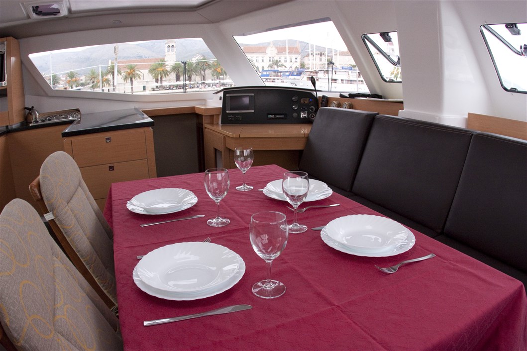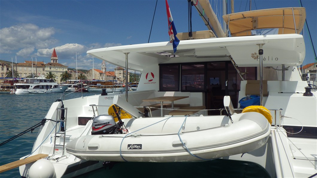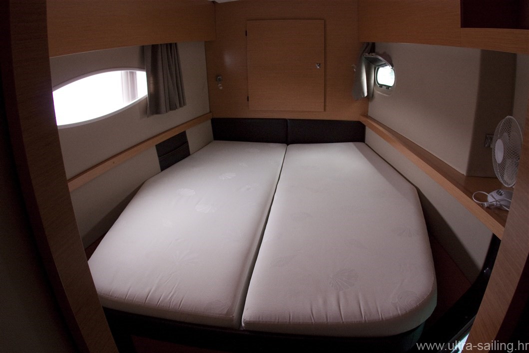 Furling genoa, Anchor, Bimini, Cockpit speakers, Cockpit table, Electric windlass, Helm, Stern shower, Autopilot, Battery charger, Compass, FM radio/USB connection, GPS charter plotter, Navigation charts, Pilot book, Shore power 220V, VHF, Wind instruments, Dinghy, Electric bilge pump, Emergency signals, Fire extinguishers, First aid set, Fog horn, Life belts, Life jackets, Manual bilge pump, Outboar engine - extra, bed linen, Fridge, Gas bottles, Hot water, Kitchen utensils, Small towels 50X70cm, Stove/oven, Lazy bag, Air condition , Electric winch, TV, Sink(C/W water), Boat hook, Baloon fender - aft, Chain and rope for spare anchor, Fenders, Gangway, Axe, Binoculars, Floating smoke signal, Solar pannels, Heating , Full batten main sail