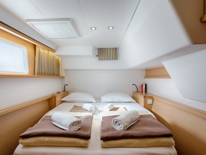 Full batten main sail, Furling genoa, Carbon gangway, Large bimini on flybridge, Teak cockpit, Air Condition, Bed linen & towels, El. refrigerator, Galley equipment, Generator, Hot water, Ice maker, Music system, Smart TV, Autopilot , Chart, GPS, Life raft, Multi instruments , Plotter VHF, Radio, Dinghy, Donut, Kayak, Kneeboard, Snorkelling set, Stand up paddle board, Outboard engine