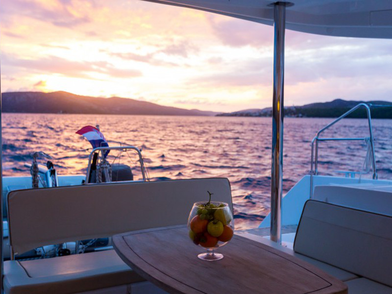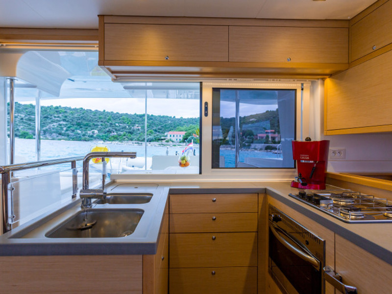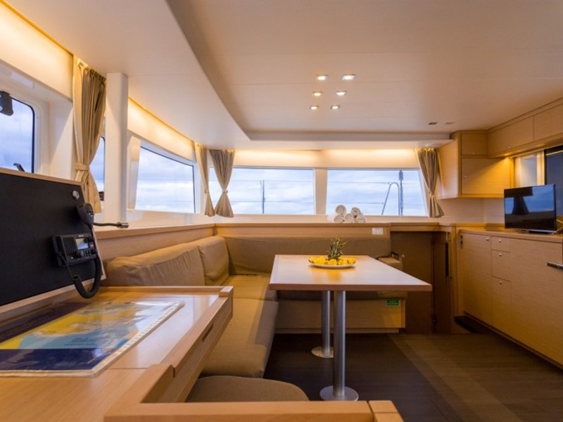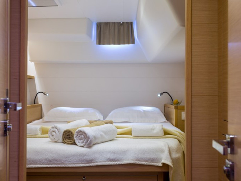 Full batten main sail, Furling genoa, Carbon gangway, Large bimini on flybridge, Teak cockpit, Air Condition, Bed linen & towels, El. refrigerator, Galley equipment, Generator, Hot water, Ice maker, Music system, Smart TV, Autopilot , Chart, GPS, Life raft, Multi instruments , Plotter VHF, Radio, Dinghy, Donut, Kayak, Kneeboard, Snorkelling set, Stand up paddle board