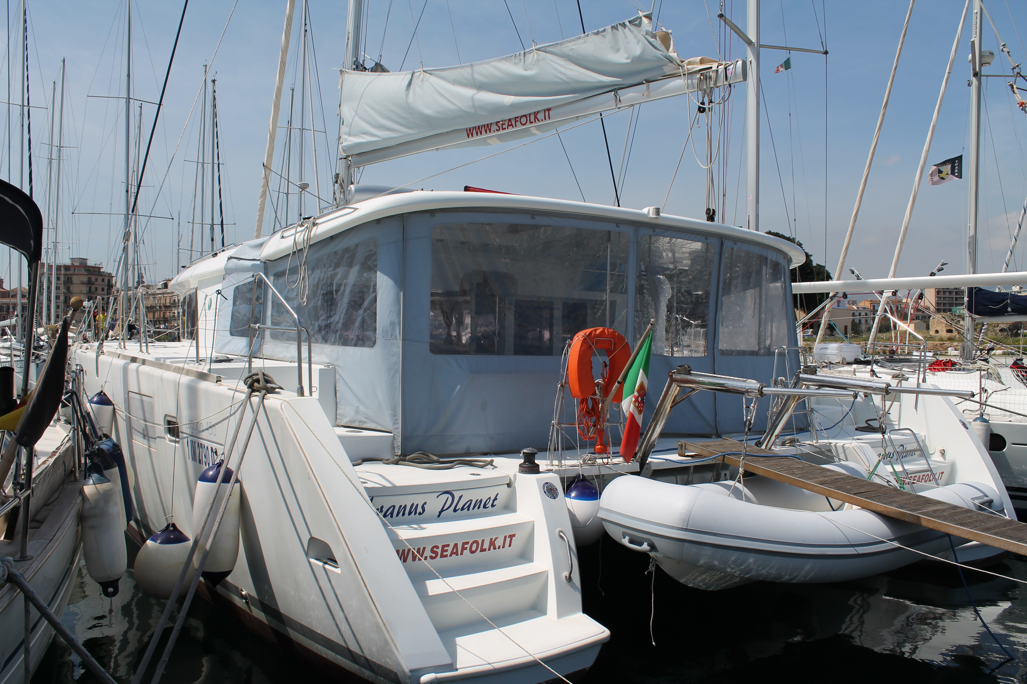 Dinghy, Autopilot, Battery charger, Bimini, Cockpit cushions, Cockpit Speakers, Cockpit table, Connection cable, Deck light, Deck Shower, Genoa Furling, Log/Speedo, Radio/CD, Safequipment, Sprayhood, Waste tank, Full batten Main Sail, Lazy Bag, Anemometer, Echo Sounder, Electricity on board 12V and 220V, Electric wc, Electric winch, Electric windlass, GPS + plotter, Inverter