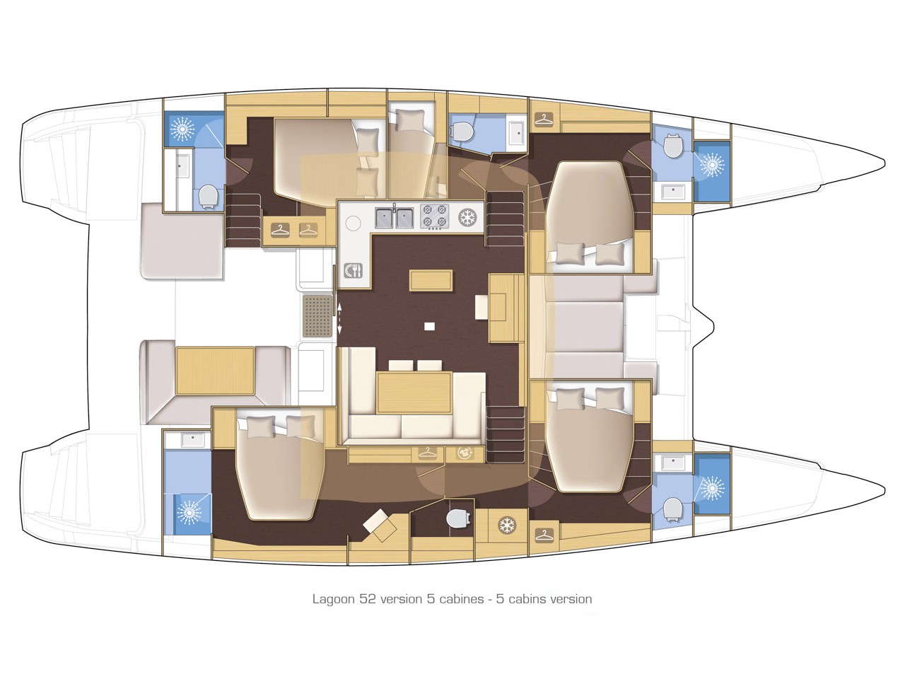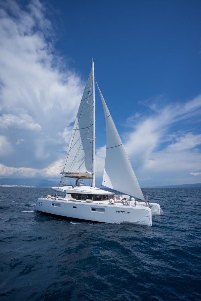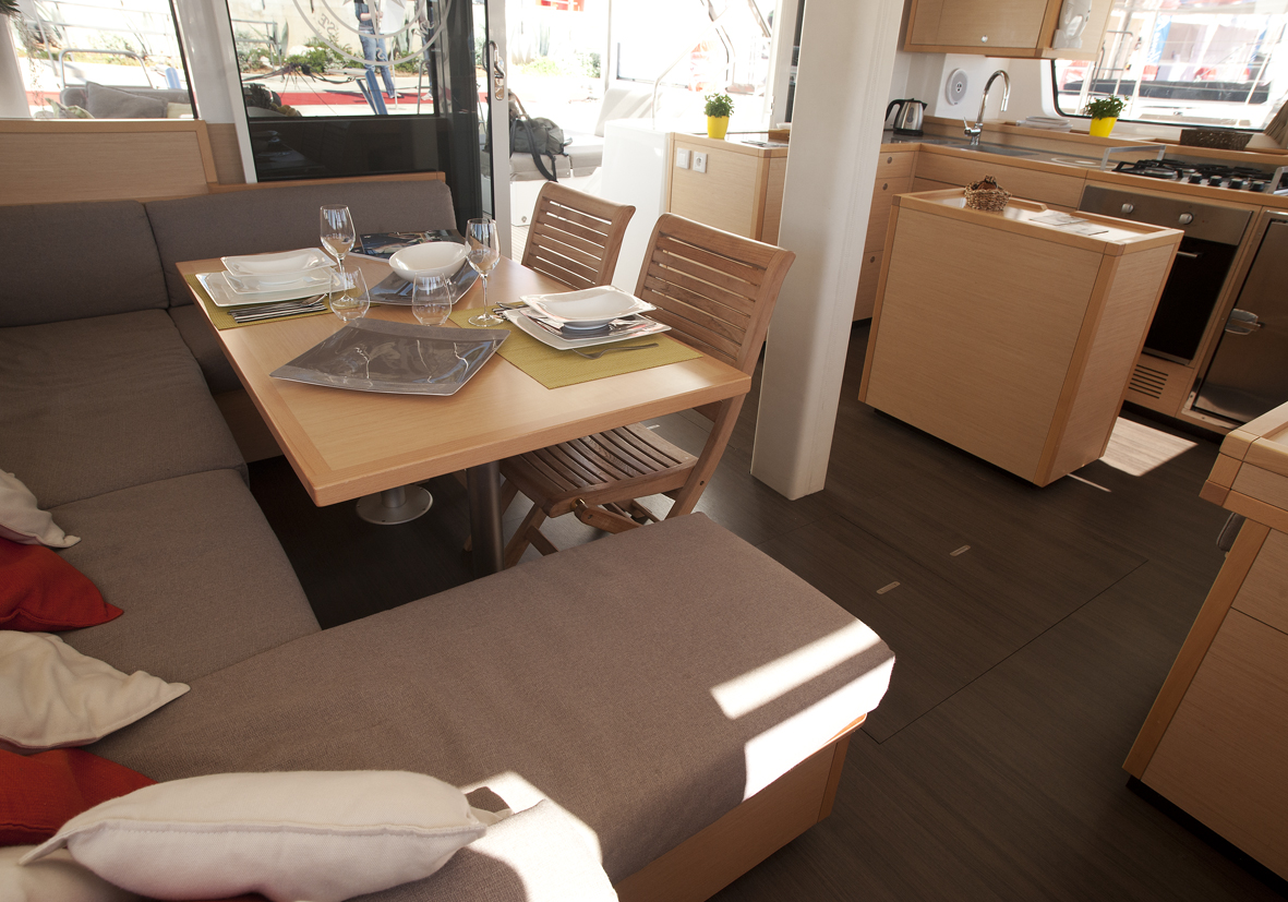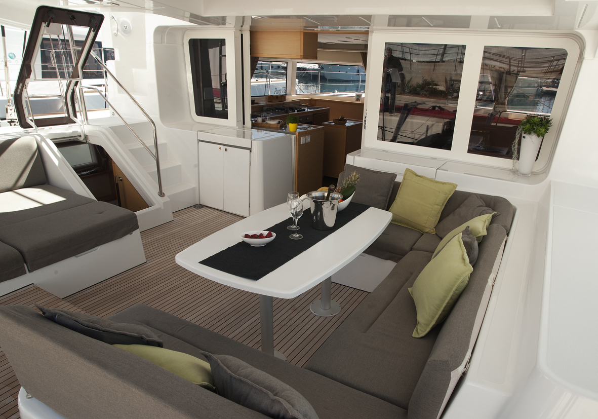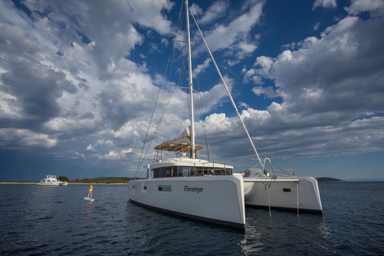 Dinghy Rigid, Outboard engine, 220 V shore connection, electrical toilet, Engine Battery (in Ah.), Generator, Service Battery (in Ah.), Shore Power Connection, Cockpit Speakers, Radio/CD, TV + DVD, Cutlery, dishes, icemaker, Refrigerator, Sinks, Autopilot, GPS Chartplotter, Log/Speedo, Main Deck Compass, Air Conditioning, Hot Water System, Standard main sail, Rollgenua, Bathing Platform, Cockpit Fridge, Electric Windlass, Gangway, Bow Thruster, hand towels, Linen, underwater lighting, Auxiliary anchor, Calibrated anchor chain, Distress flares, Fire extinguisher, First aid kit, Lifebuoy, Liferaft, Main anchor, Safety harness, 2 person Kayak, S.U.P., Snorkel Equipment, water ski, beach towels, Life jackets, water heater, Watermaker, Bimini, sprayhood, teak cockpit, VHF, Heating, Freezer, gas stove, battery charger, Nautical charts and nautical guide, Pillows and blankets