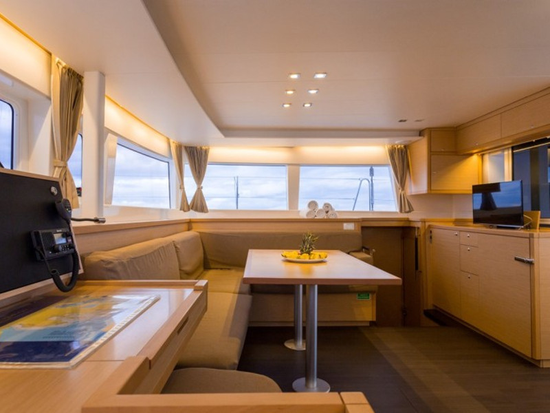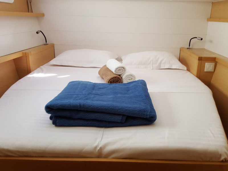 Full batten main sail, Furling genoa, Carbon gangway, Air Condition, Bed linen & towels, El. refrigerator, Galley equipment, Generator, Hot water, Music system, Smart TV, Autopilot , Chart, GPS, Life raft, Multi instruments , Plotter VHF, Radio, Dinghy, Donut, Kayak, Snorkelling set, Stand up paddle board, Outboard engine