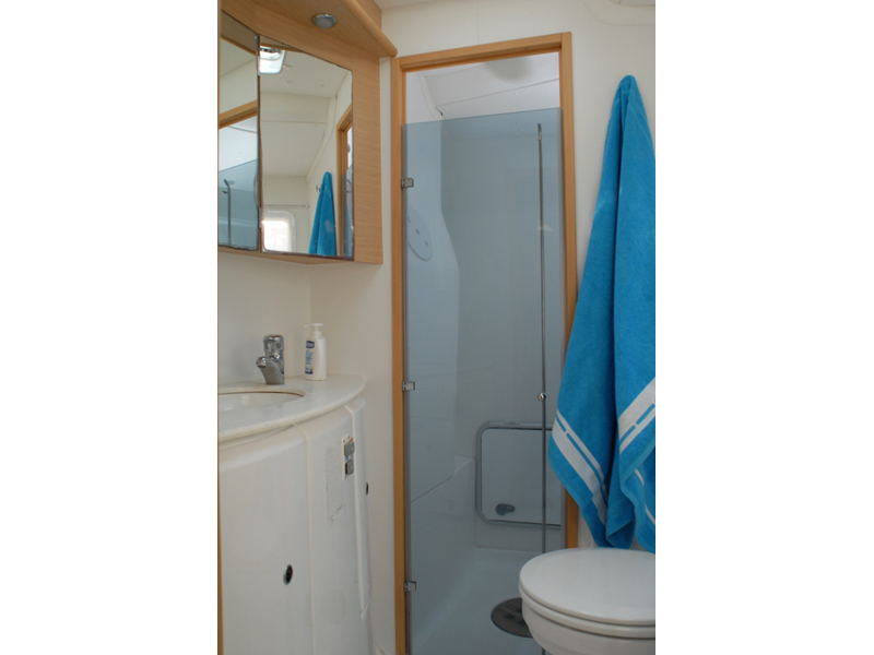 Autopilot, 12 Volt Sockets, 220 Volt Sockets, Air conditioning, Batten Mainsail, Battery charger, Bimini top, Binoculars, Boat hook, Bosuns chair, Cockpit light, Cockpit table, Coffee maker, Compass, Davits, Deck shower, Depth gauge, Dinghy, Electric winches, Electric Windlass, Emergency tiller, Fans in the cabin, Fenders, Fire Extinguishers, First aid kit, Furling Genoa , Generator, GPS Plotter, Heating, Holding tank, Ice maker, Inflatable life raft, Inverter, Kitchen equipments, Ladder, Lazy Bags, Life bouy + flahing light, Life jackets, List of Lights, Main anchor, Mooring lines, Nautical charts, Oars, Outboard, Outside speakers, Oven, Radar reflector, Radio/CD MP3 + aux input, Radiotelephone VHF, Safety Belts, Sail Repair Kit, Snorkeling Gear, Speedometer, Teak deck, Tool box, Winch handles, Wind instrument/Anemometer, Electric an manual bilge pump, Electric toilets, External speakers, Lazy Jack, Manual bilge pumps, Jerrycans for diesel, Jerrycans for gasoline, Fuel funnel, Blankets, Pillows, Wardrobe, USB/Aux input, External cushions, Flashlight, Deck brush, Plastic bucket, Gas cylinders, Water hose, Engine oil, Lubricant, Pump, Broom, Small shovel, Log, Anemometer, Hand compass, Navigation ruler, Watch, Insurances, Water pilot, Spare anchor + chain, Rockets parachute, Hand flares, Fog horn, Safety net, Hob, Electric Refrigerator, Wi-fi, Moka, Water maker